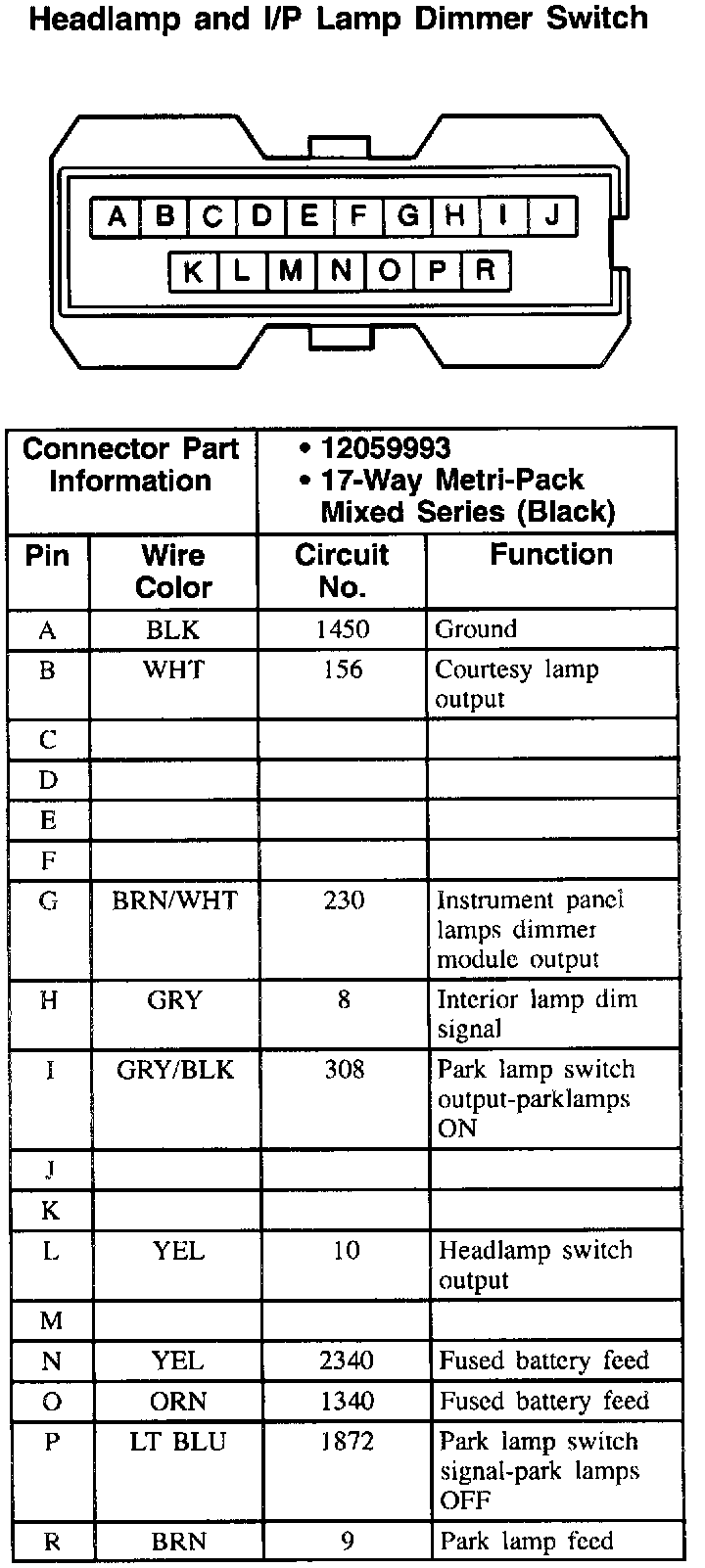 Headlamp And I/P Lamp Dimmer Switch: