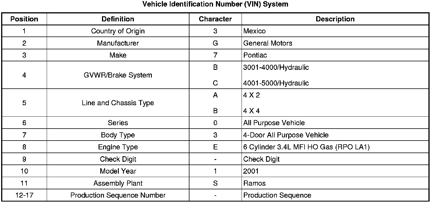 The Vehicle Identification Number (VIN) plate (1) is the legal identifier of the vehicle. The VIN plate is located on the upper left corner of the instrument panel and can be seen through the windshield from the outside of the vehicle.
