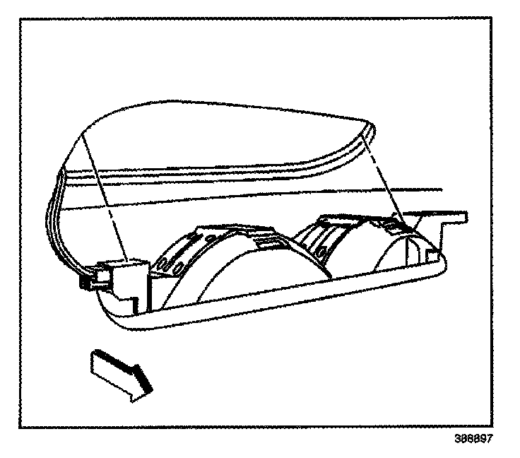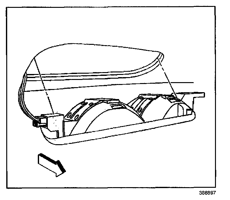 4. Install the rear cargo lamp into the rear upper garnish molding, pressing into place until fully seated.