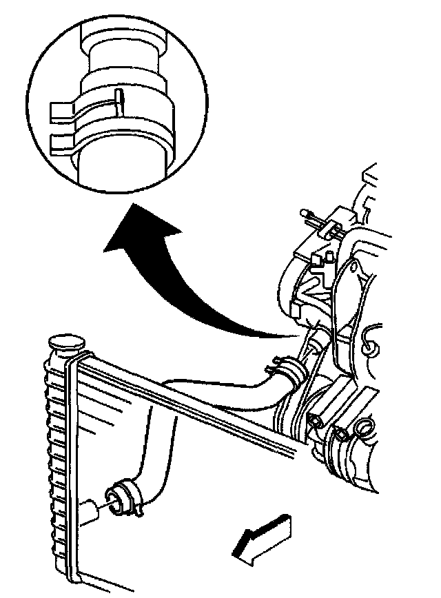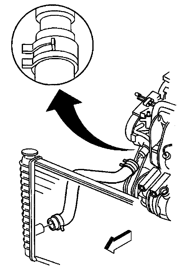 3. Reposition the hose clamp at the radiator to secure the hose using the J 38185.