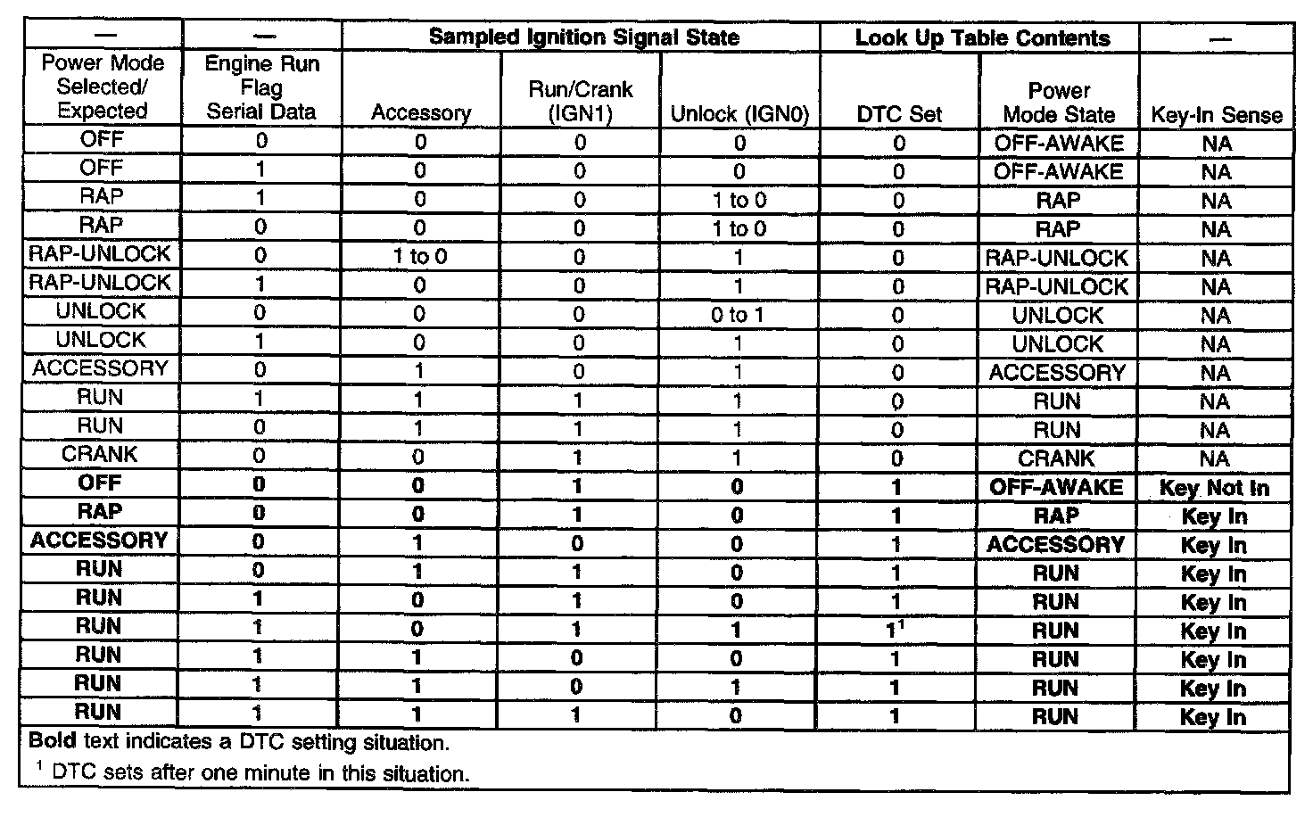 On vehicles that have several control modules connected by serial data circuits, one module is the Power Mode Master (PMM). On this vehicle the PMM is the Body Control Module (BCM). The PMM receives 3 signals/circuits from the ignition switch. These are the Unlock (IGN0), Run/Crank (IGN1) and Accessory (ACC) ignition switch signals/circuits.To determine the correct power mode the PMM uses: