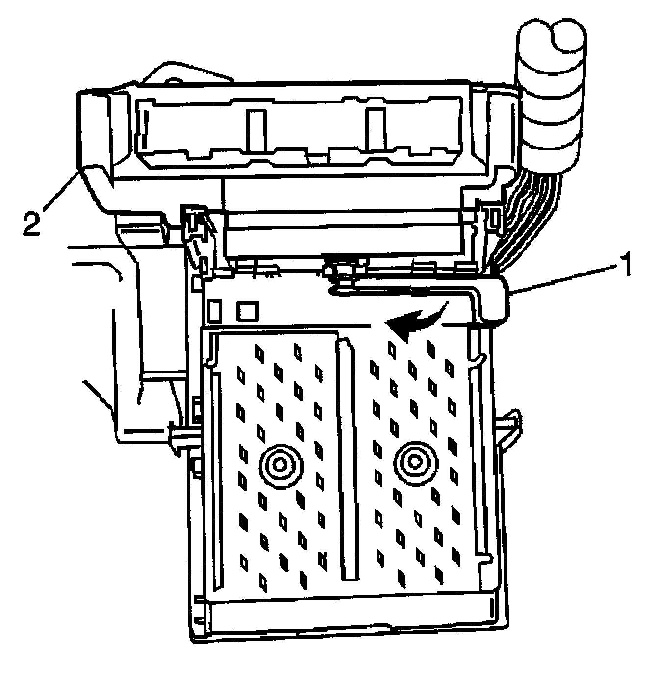 Inside the console above the console accessory wiring junction block