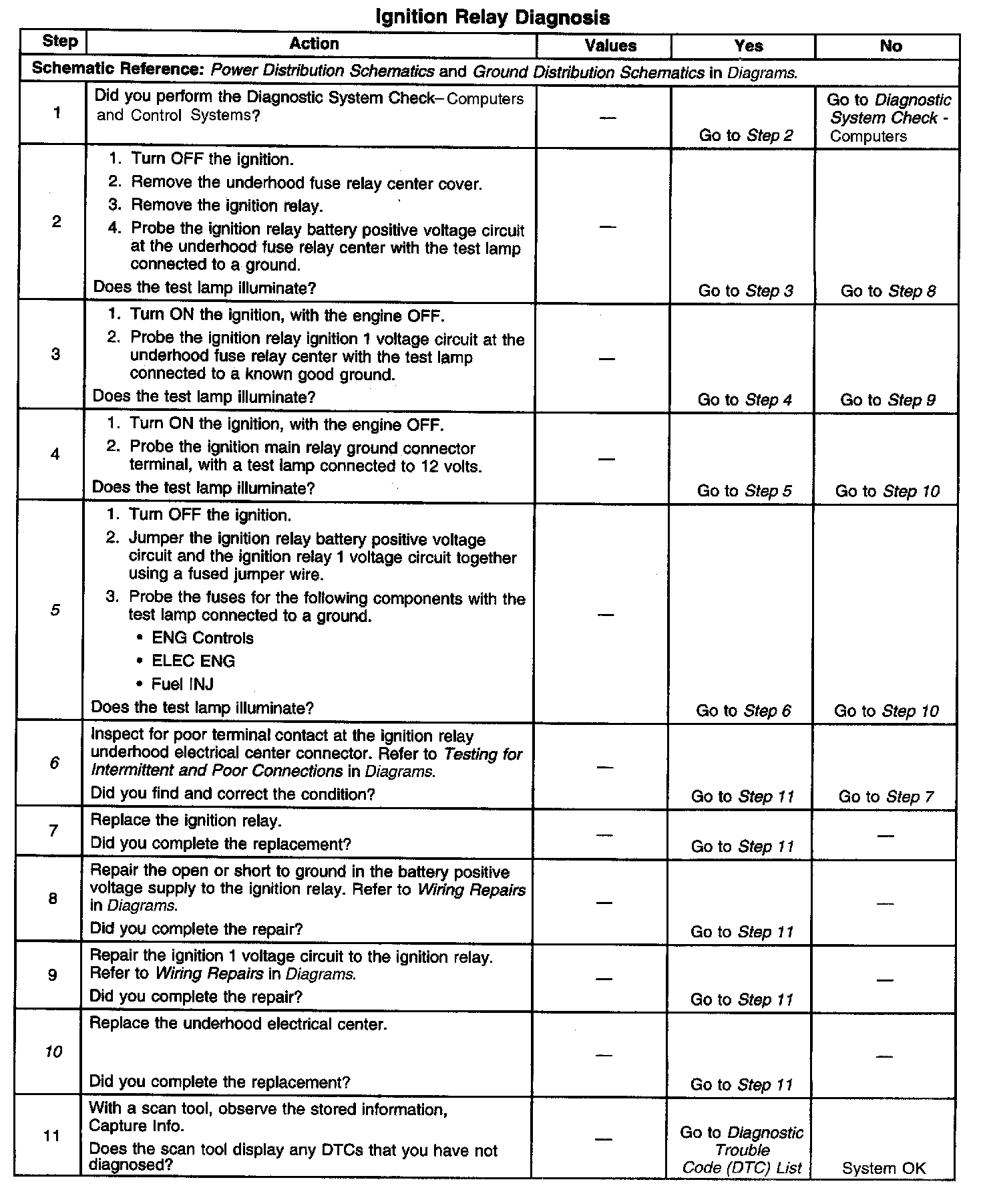 6. This step isolates the circuit from the ignition relay. All of the circuits at the relay are good if the test lamp illuminates.