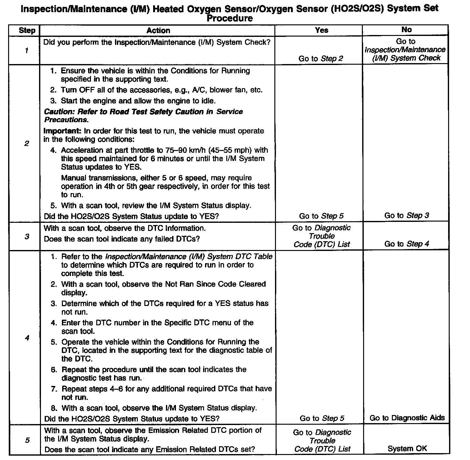 5. The I/M System Status only reports on whether or not a diagnostic has run, not what the outcome of the test was. If any Emission Related DTC sets after the tests are complete, the DTC will require diagnosis.