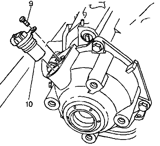 2. Install the vehicle speed sensor (10) and the retaining bolt (9).