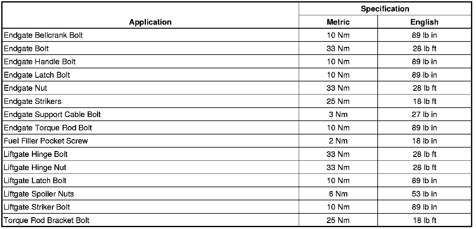 Fastener Tightening Specifications - Body Rear End