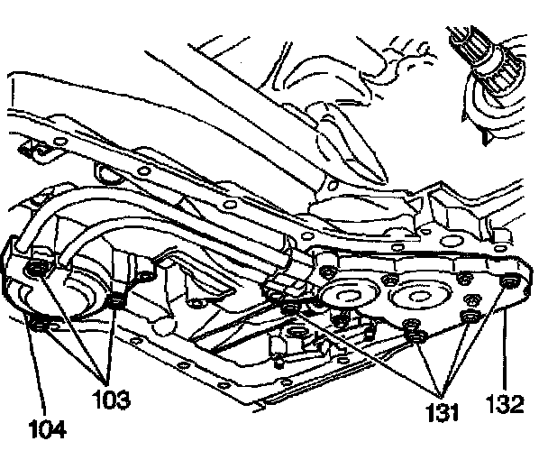 5. Remove the manual 2-1 band servo cover bolts (103).