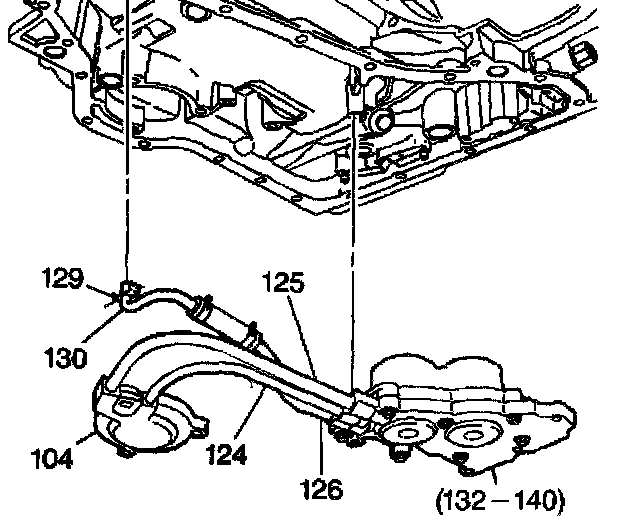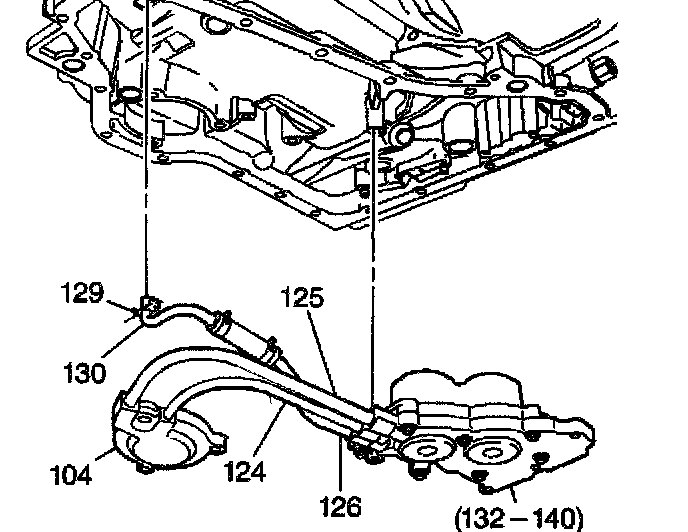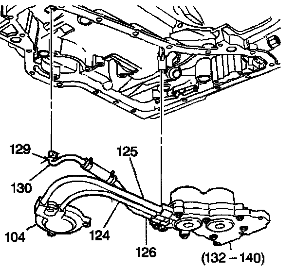 6. Install the lube oil pipe (130) into the case at the lube hole for the front differential carrier internal gear.