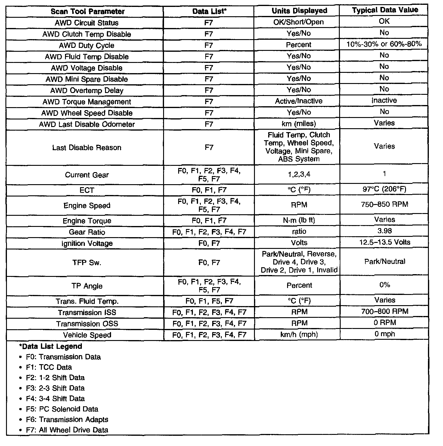 Only the parameters listed below are used for diagnosing. If a scan tool displays other parameters, the values are not recommended by General Motors for use in diagnosis. Scan tool values below were recorded under the following conditions:
