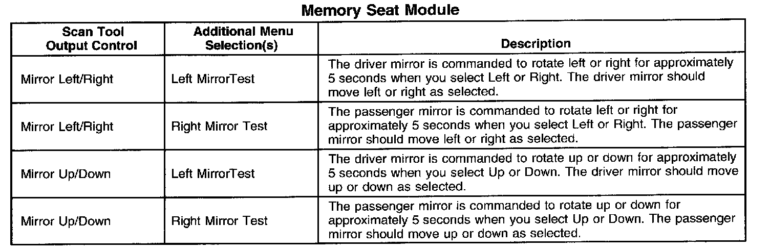 Scan Tool Output Controls - Memory Seat Module (MSM)