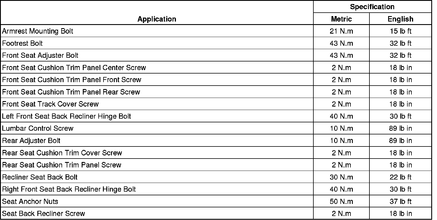 Seats: Specifications