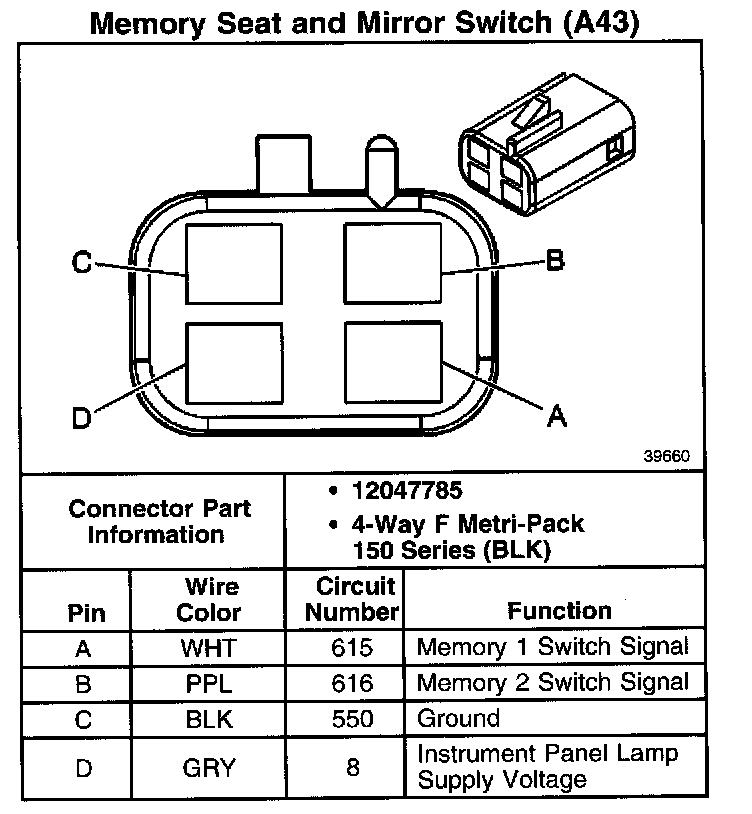 Memory Seat And Mirror Switch (A43):