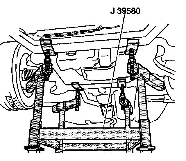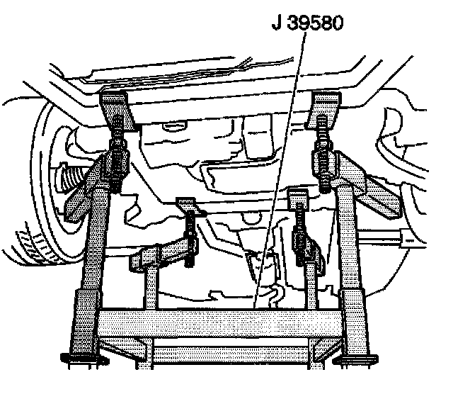 9. Lower the vehicle until the frame contacts the transaxle table.
