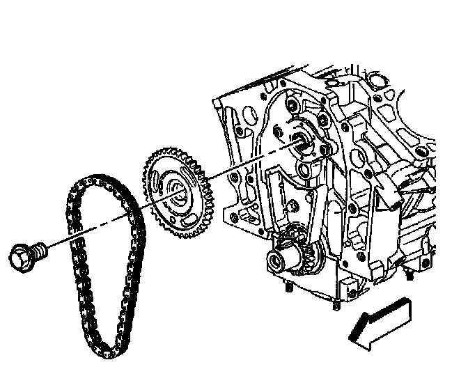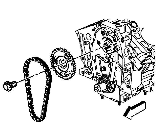 5. Remove the camshaft sprocket and timing chain.