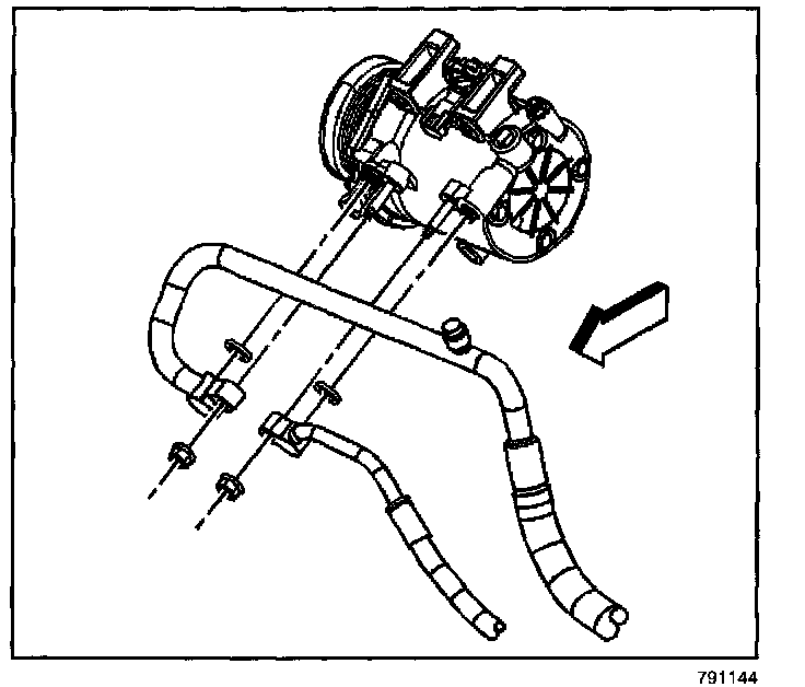 16. Remove compressor mounting bolts.