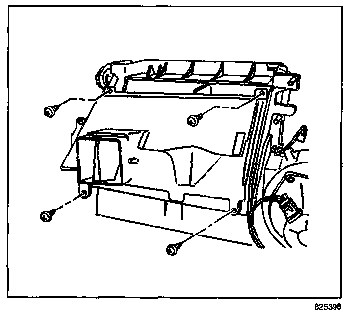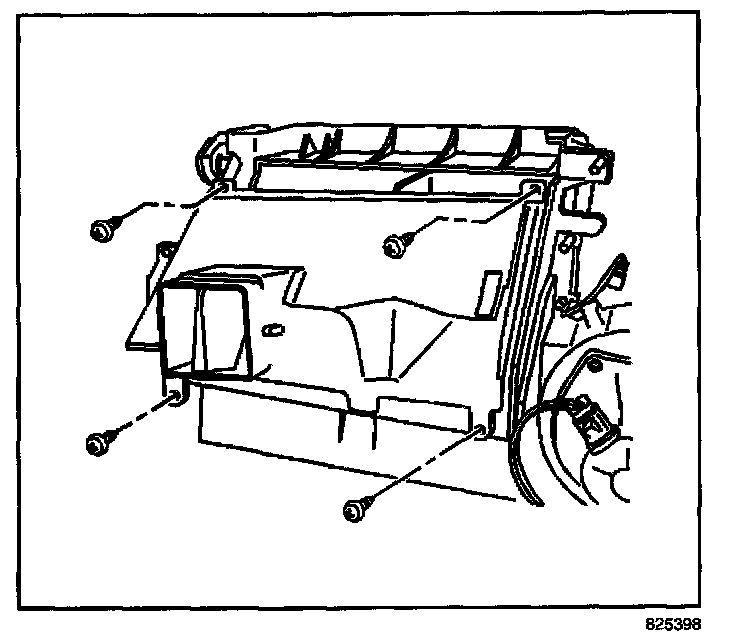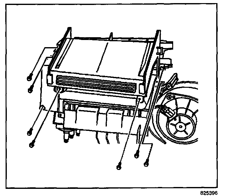 8. Remove the screws retaining the heater core cover.