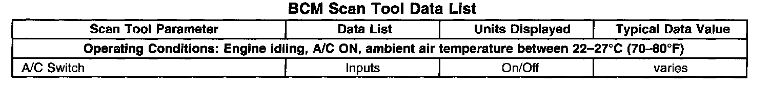 BCM Scan Tool Data List: