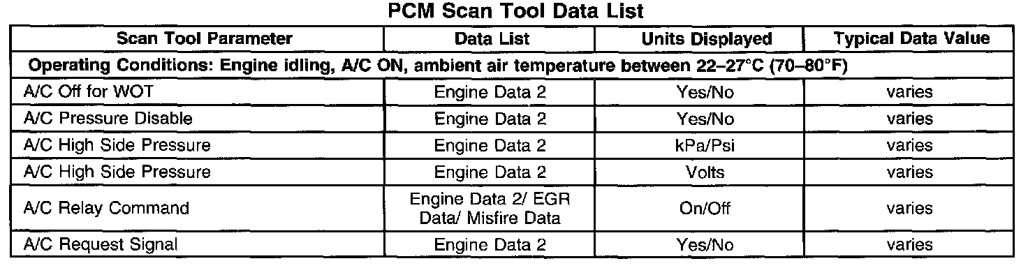 PCM Scan Tool Data List: