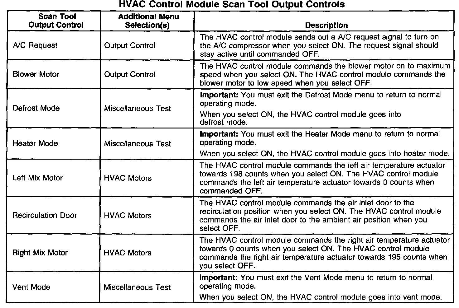 HVAC Control Module Scan Tool Output Controls: