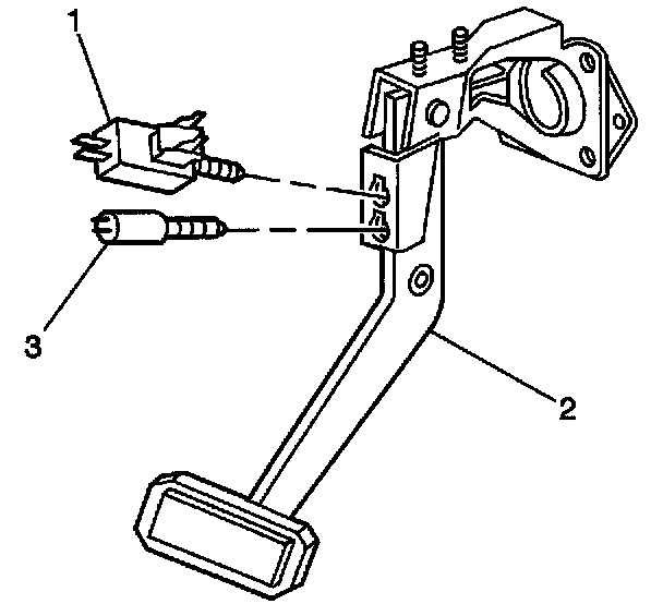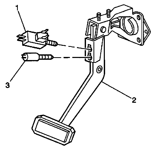 3. Remove the stop lamp switch (1) from the brake pedal bracket by turning the switch counterclockwise approximately 1/4 turn, and pulling back.