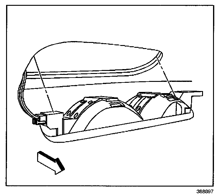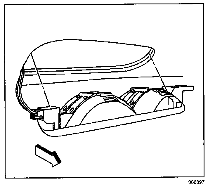 REMOVAL PROCEDURE1. Use a small flat-bladed tool in order to remove the rear cargo lamp from the rear upper garnish molding.
