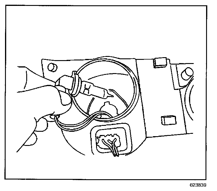 8. Remove the headlamp bulb from the socket, turning counterclockwise.