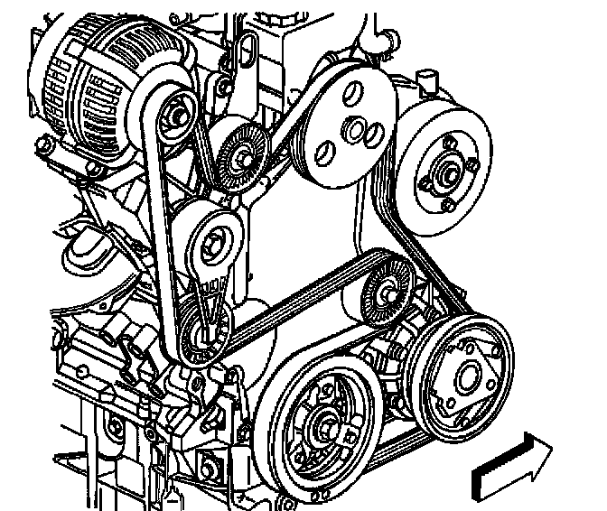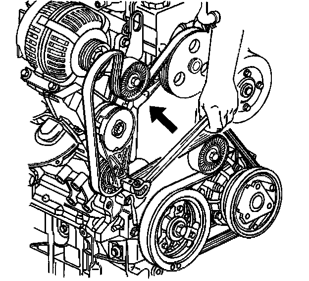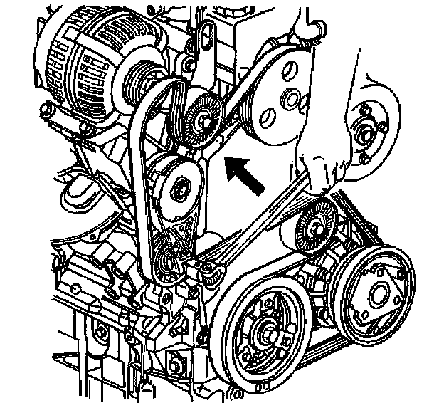 Important: Ensure that the drive belt is aligned into the proper grooves of the accessory drive belt pulleys.