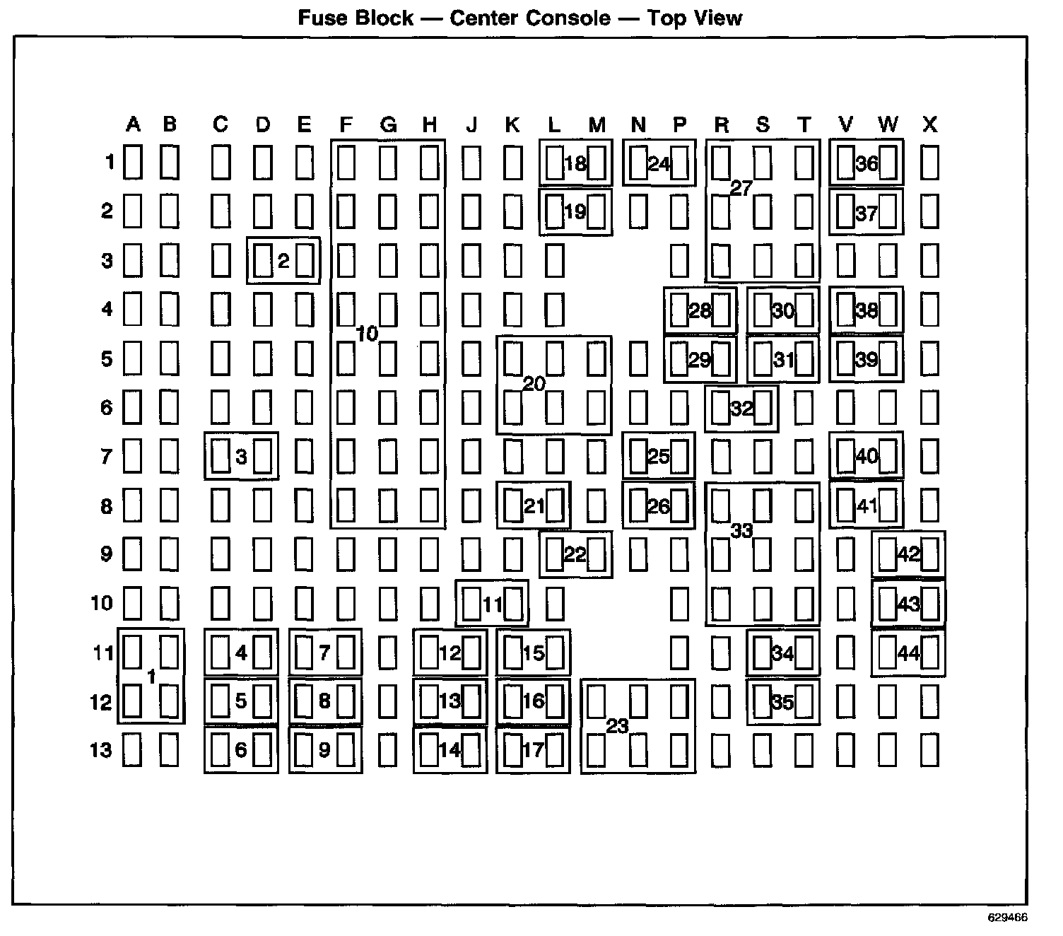 Fuse Block - Center Console - Top View: