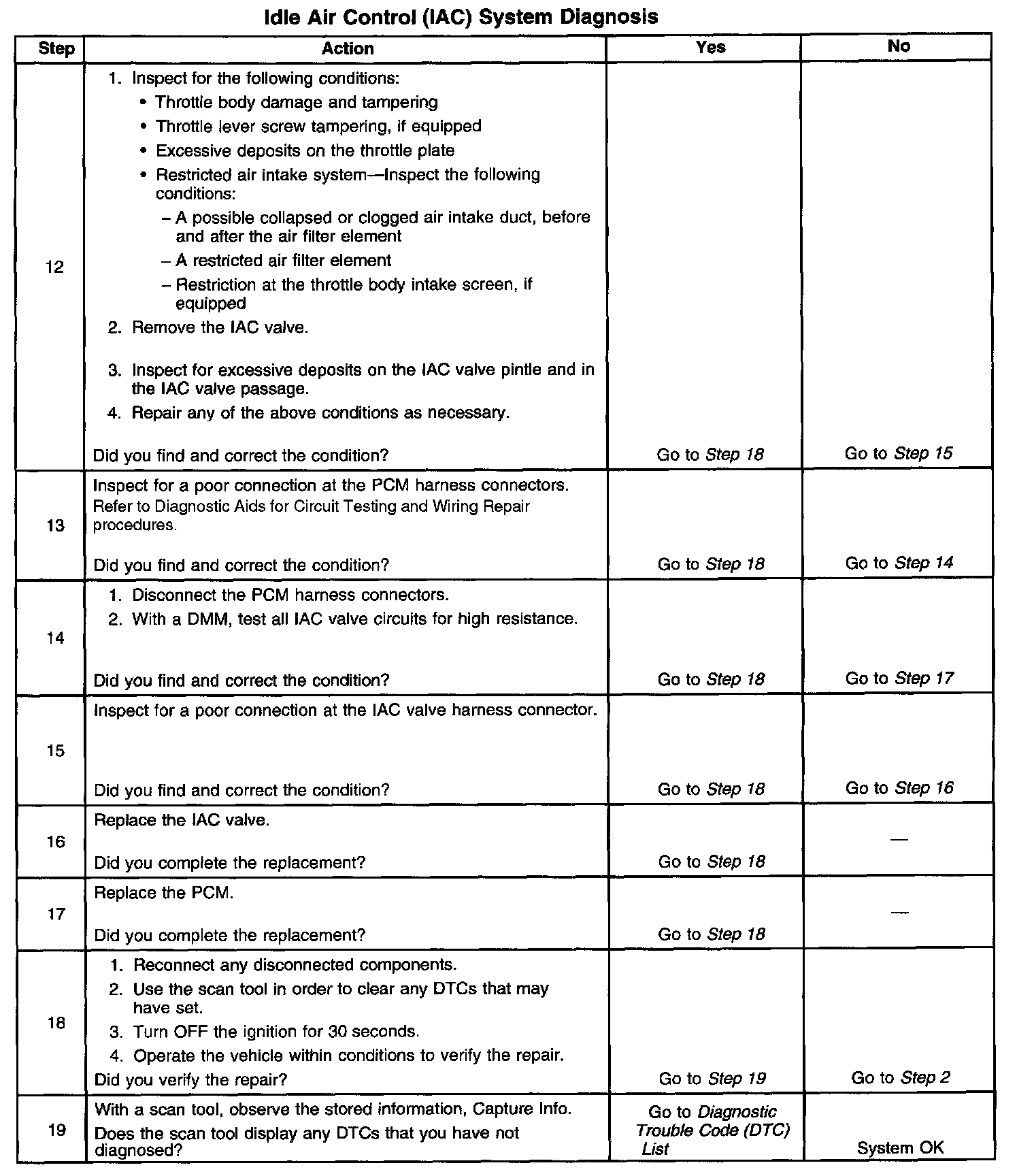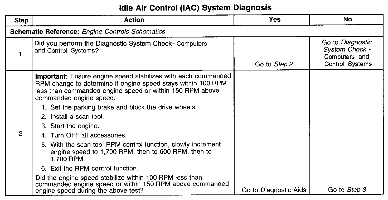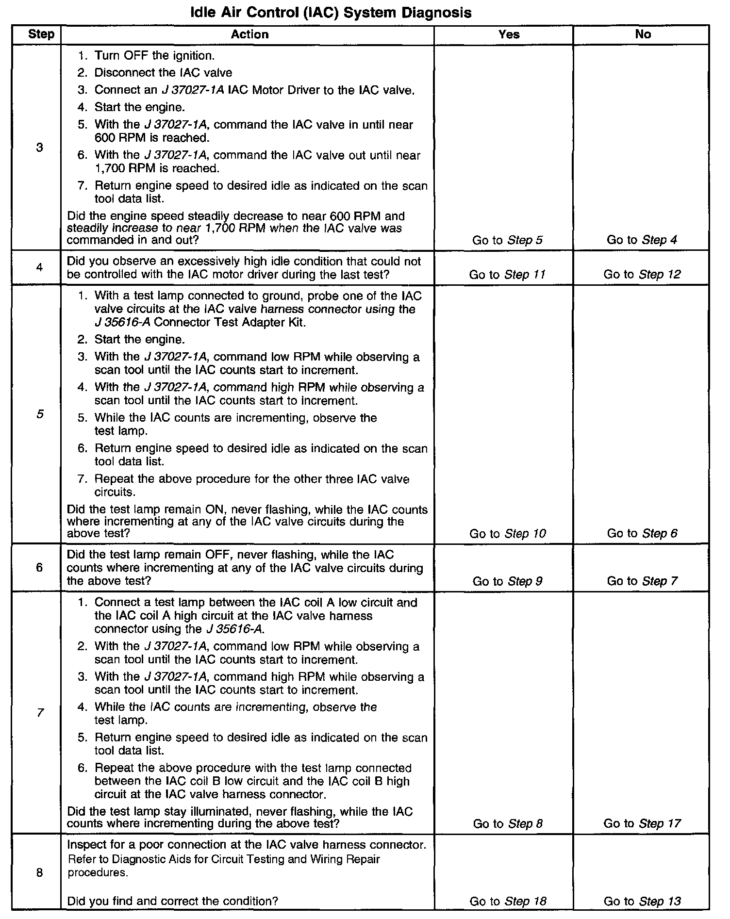 ^ A high or unstable idle condition could be caused by a non-IAC system problem that can not be overcome by the IAC valve. Refer to Symptoms - Computers and Controls Systems. Symptom Related Diagnostic Procedures