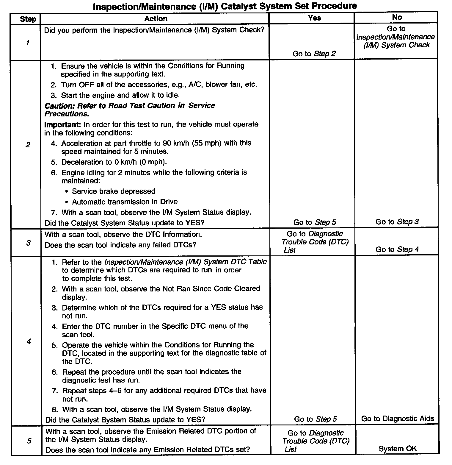 I/M Catalyst System Set Procedure