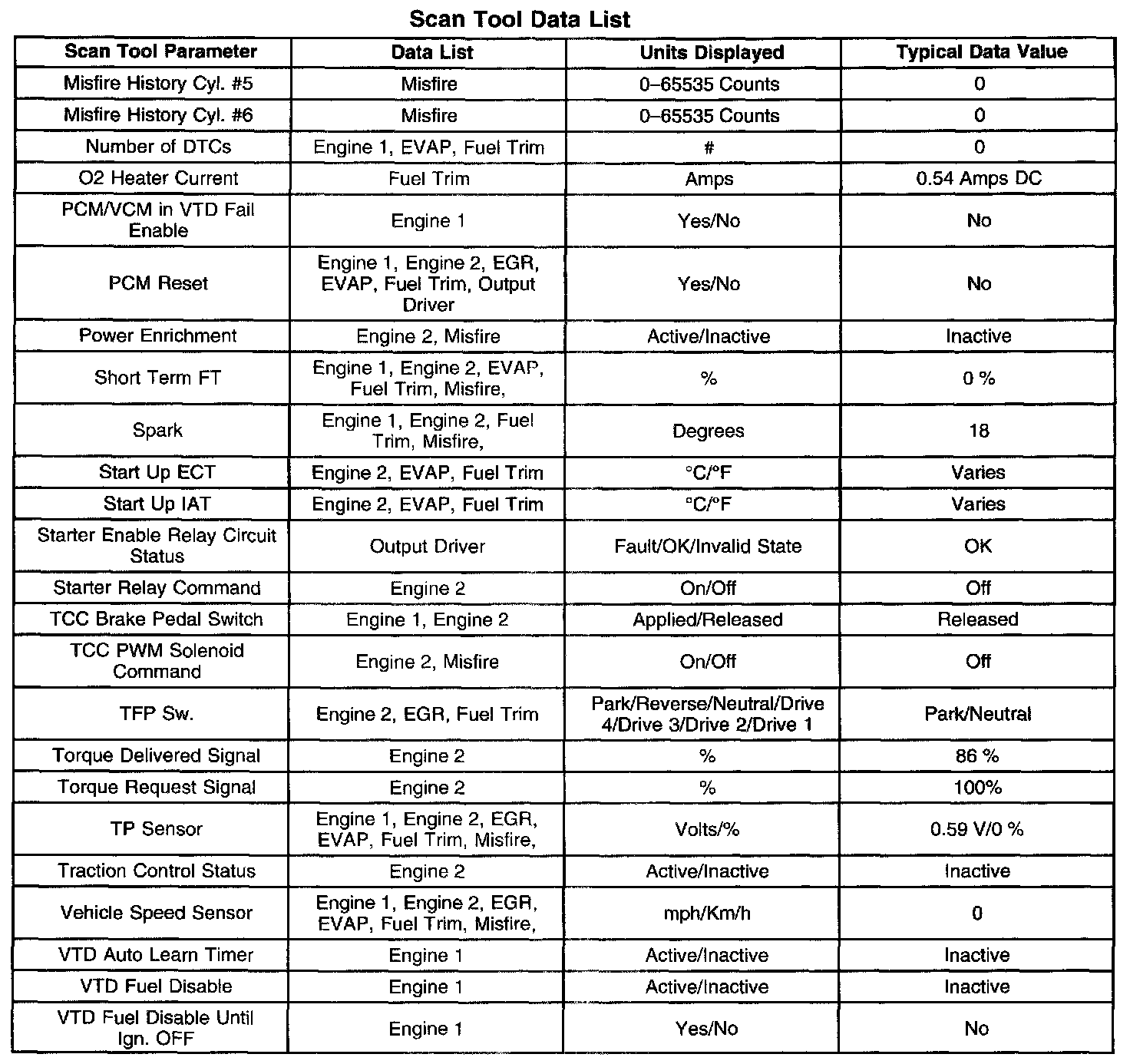 Scan Tool Data List - Powertrain System