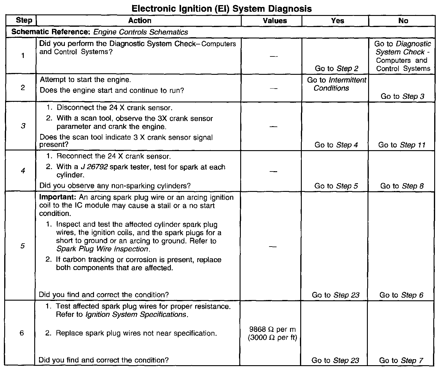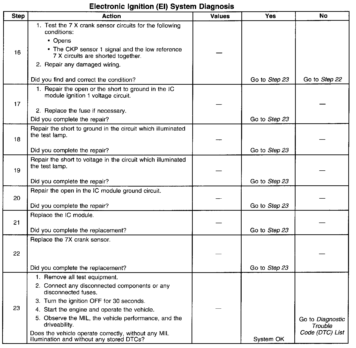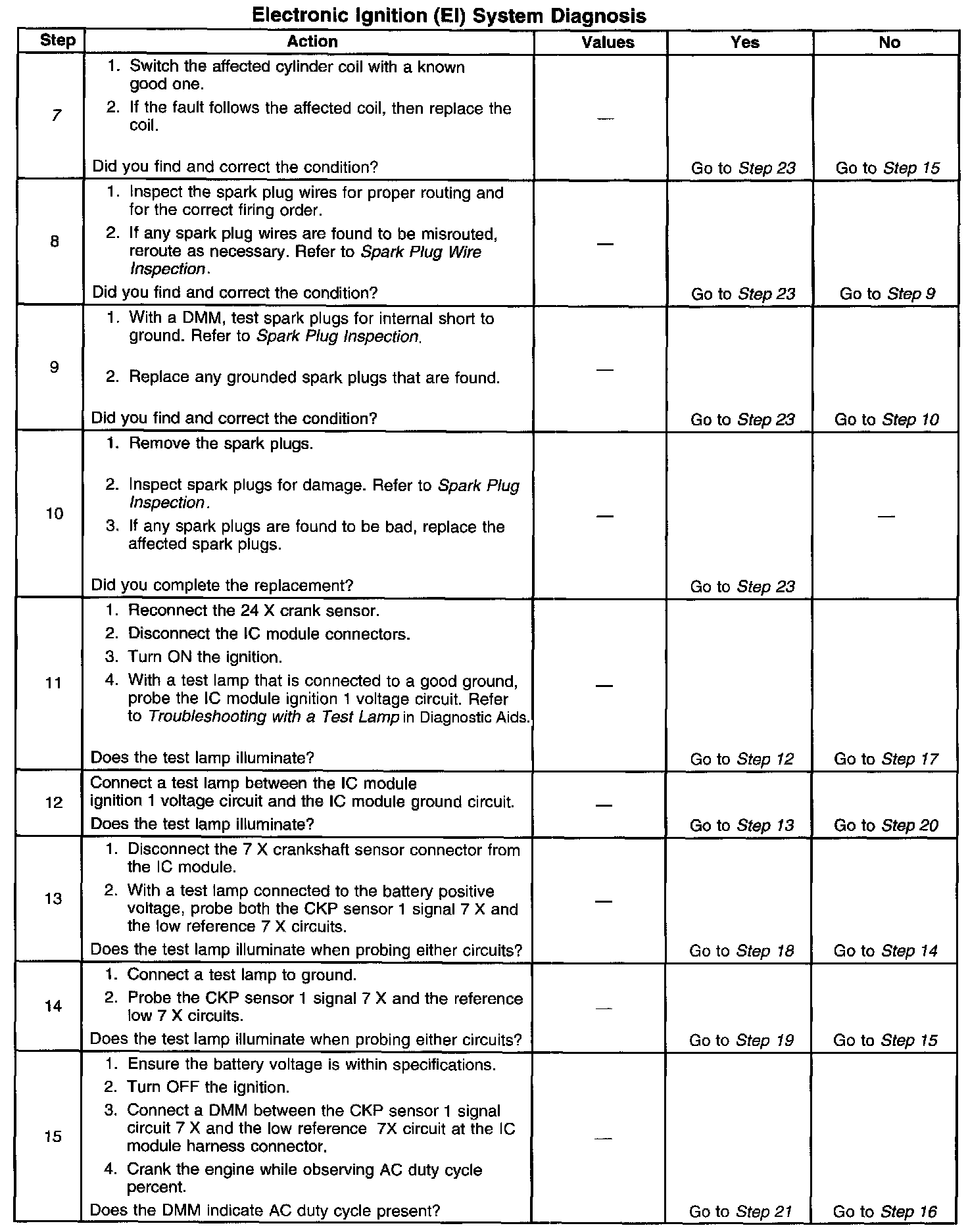 7. If the no spark condition follows the suspected coil, that coil is faulty. Otherwise, the ignition module is the cause of no spark. This test can also be performed by substituting a known good coil for the one causing the no spark condition.