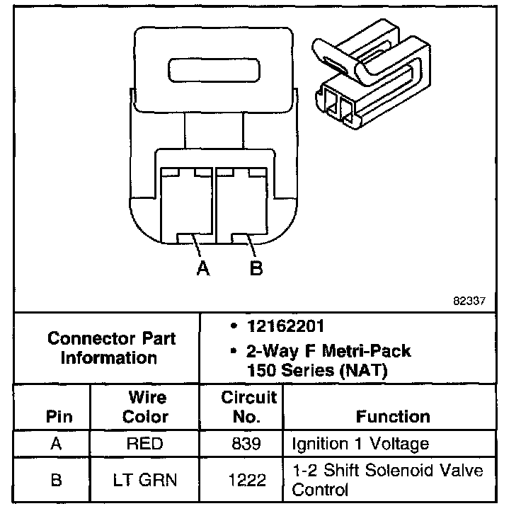1-2 Shift Solenoid Valve Connector, Wiring Harness Side