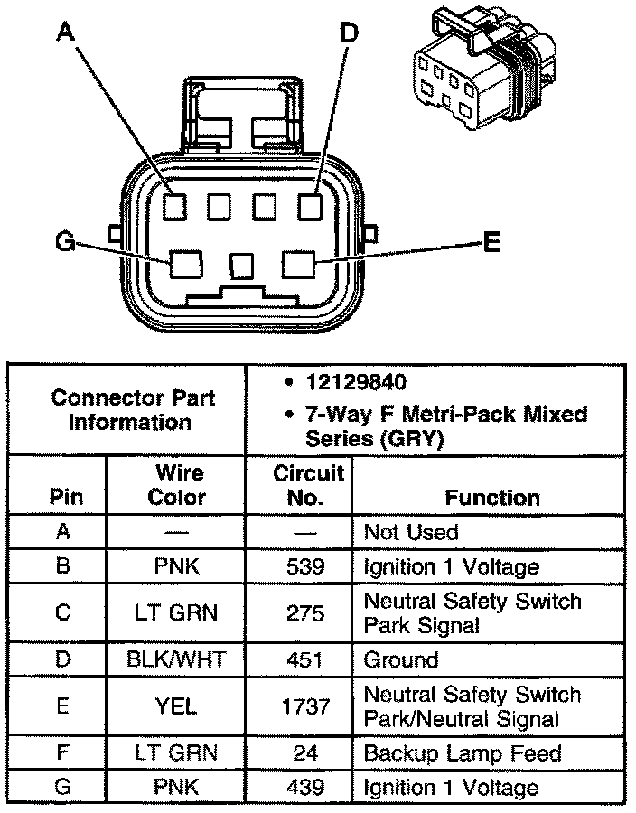 Transmission Range Switch C1 Connector, Wiring Harness Side