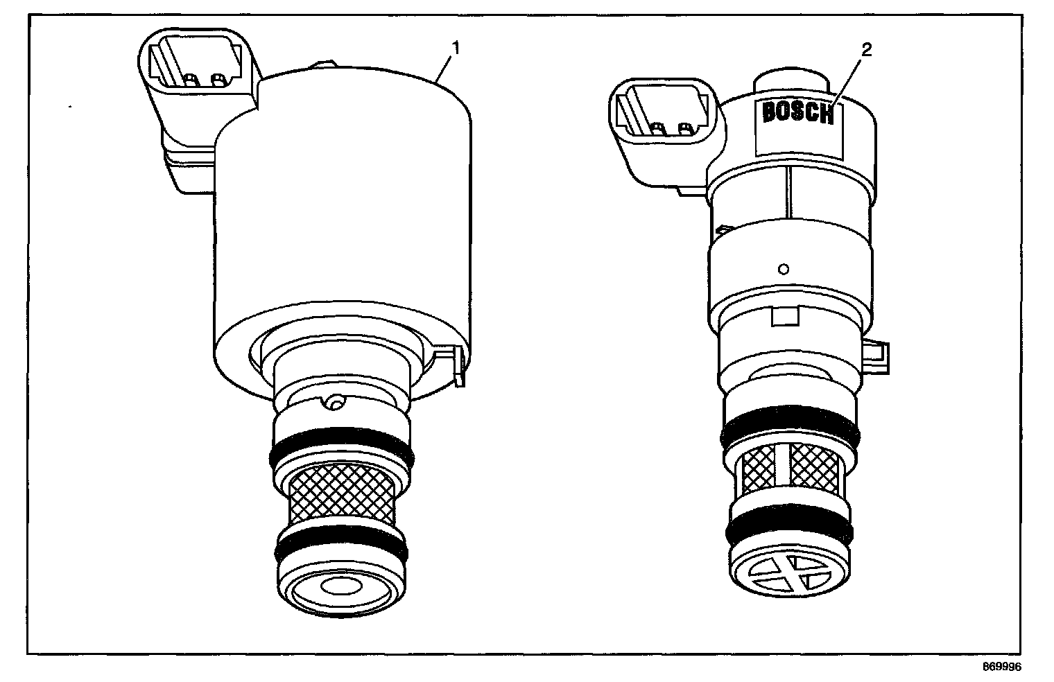 While the physical dimensions will allow usage of the new solenoid in past model transaxles or usage of the old solenoid in 2003 model transaxles, they should not be interchanged. Interchanging of the pressure control solenoids will result in improper shift characteristics, customer dissatisfaction, and needed repeat repairs.