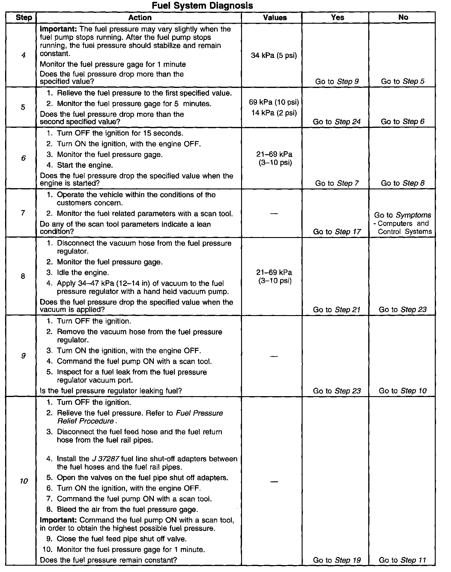 11. This step tests for a leaking fuel injector, or fuel pressure regulator. If the fuel pressure remains constant during this test, the fuel injectors are not leaking fuel.