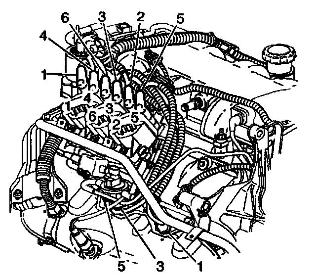 5. Remove the spark plug wires (1, 3, and 5) from the rear bank spark plugs.
