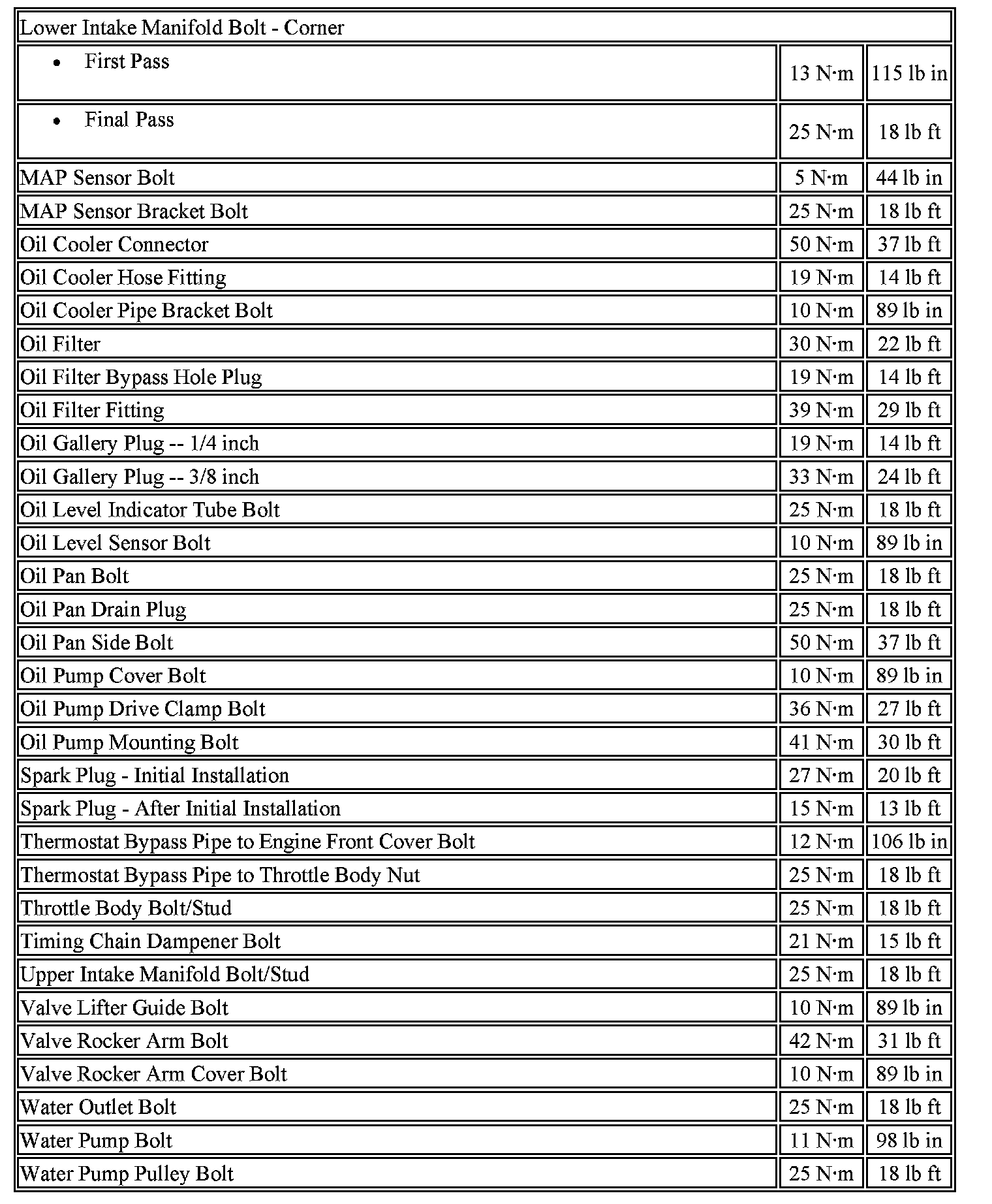 Fastener Tightening Specifications
