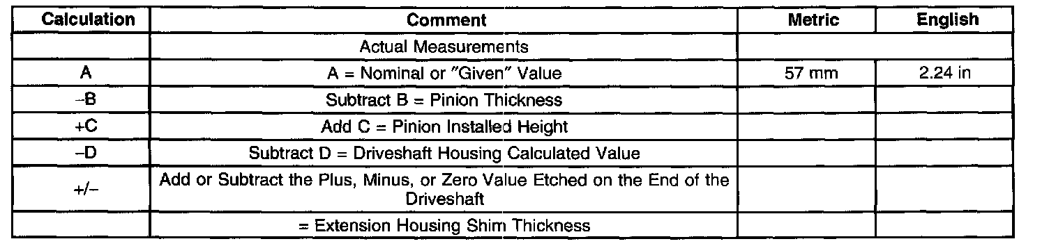 Extension Housing Shim Calculation Table - Procedure A