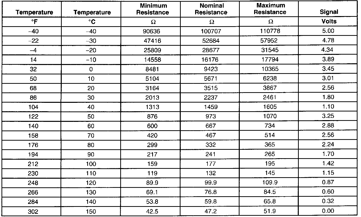 Transmission Fluid Temperature (TFT) Sensor Specifications
