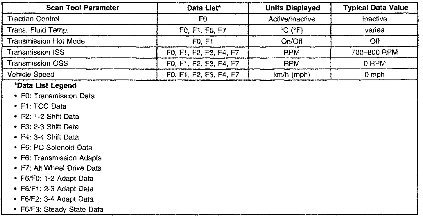 Transmission Scan Tool Data ListUse the scan tool data list under the following conditions: