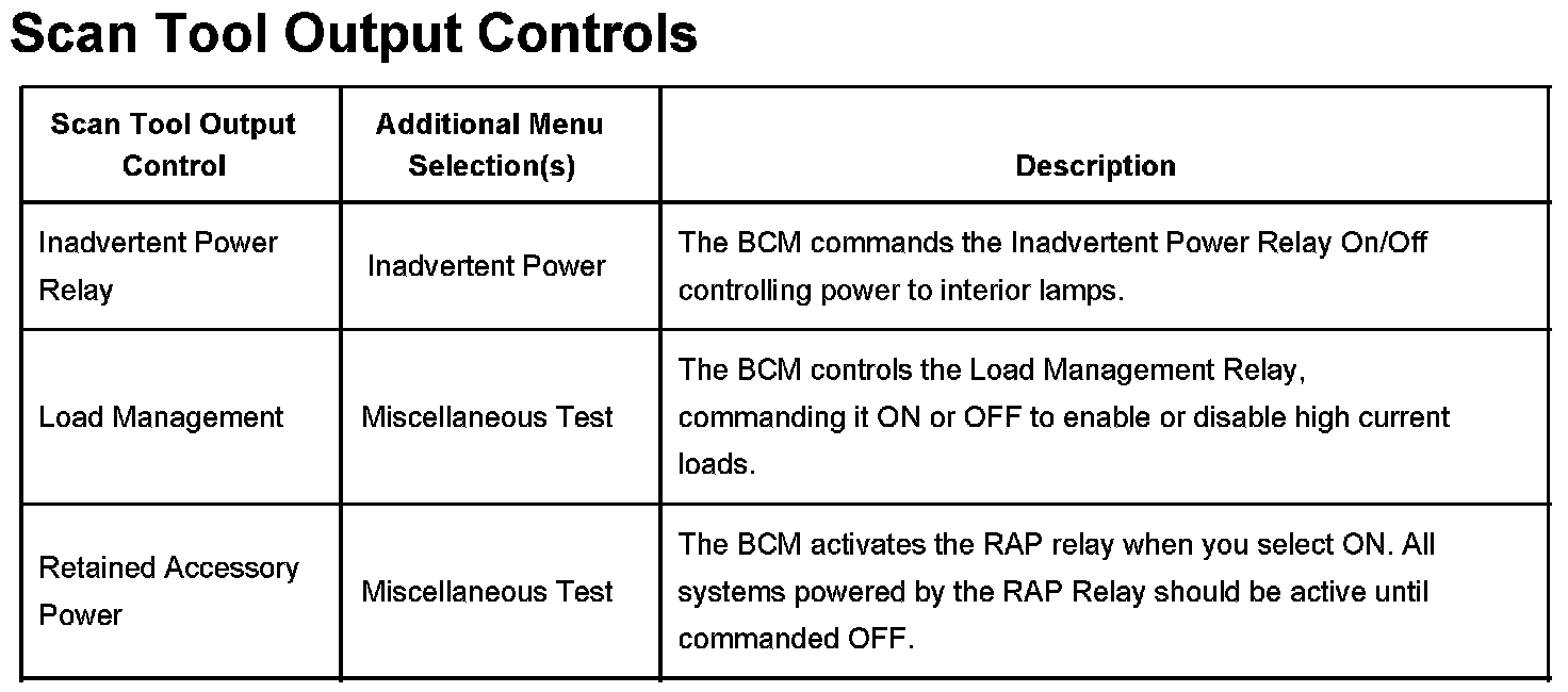 Scan Tool Output Controls:
