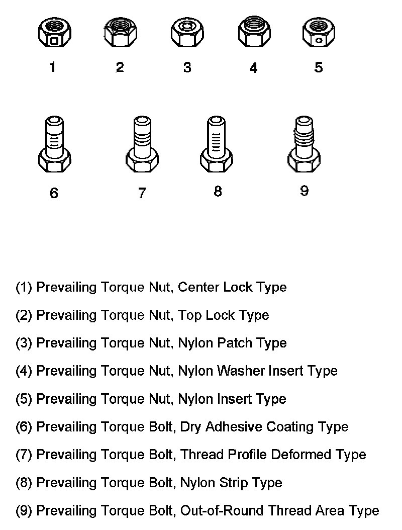 These fasteners accomplish the thread interface by the presence of a thread-locking compound on the fastener threads. Refer to the appropriate repair procedure in order to determine if the fastener may be reused and the applicable thread-locking compound to apply to the fastener.