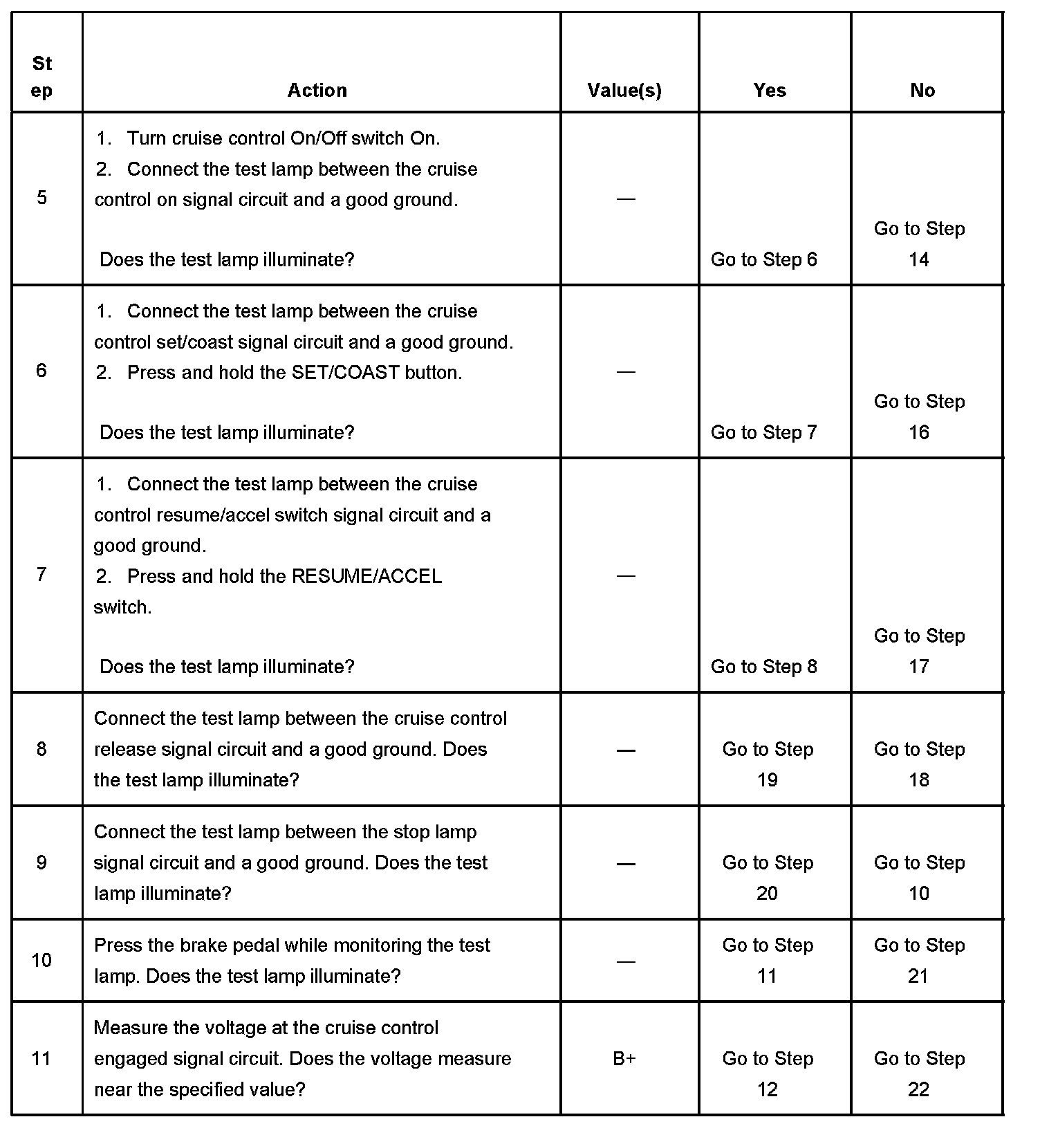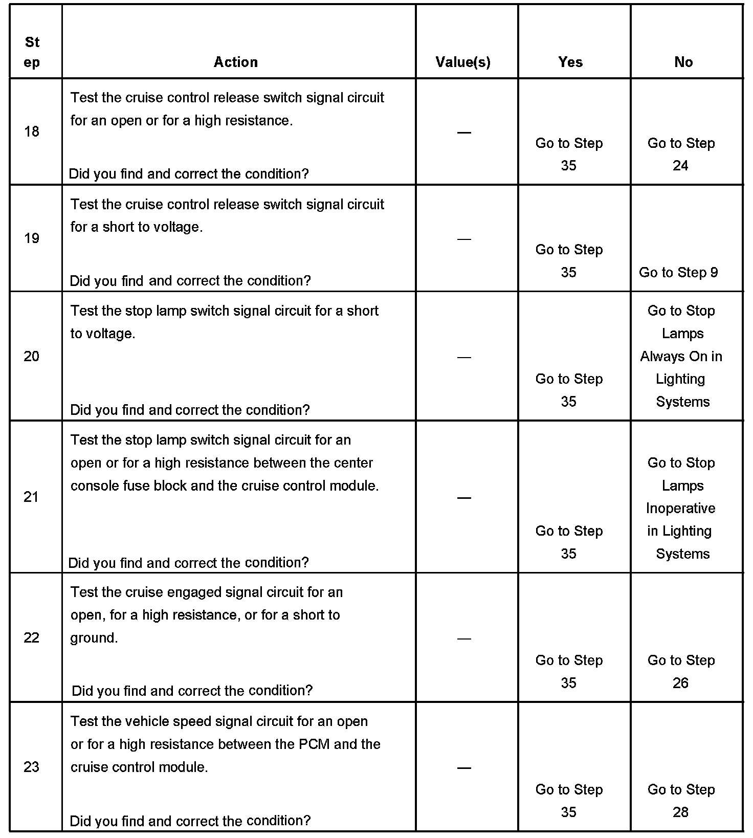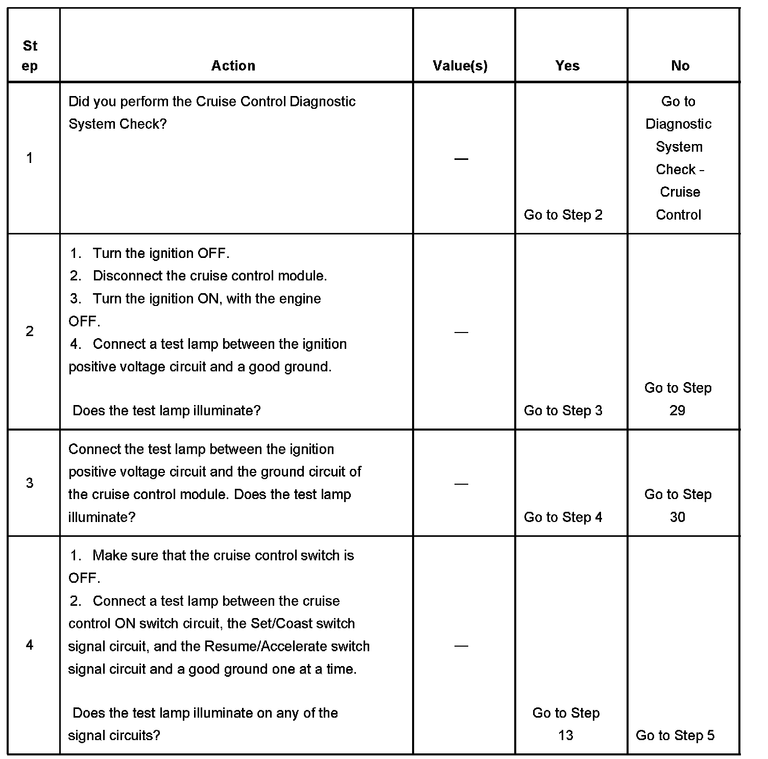 CRUISE CONTROL INOPERATIVE/MALFUNCTIONINGDIAGNOSTIC AIDS