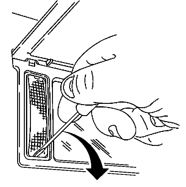 2. Insert a small flat-bladed tool at the lower edge of the vanity mirror lamp lens then press down to release the lens.