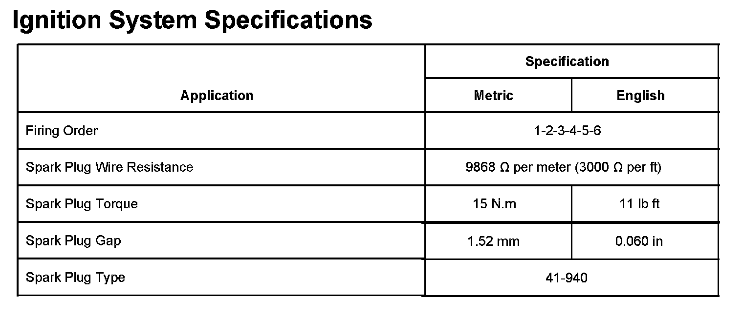 Ignition System Specifications: