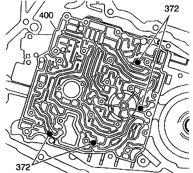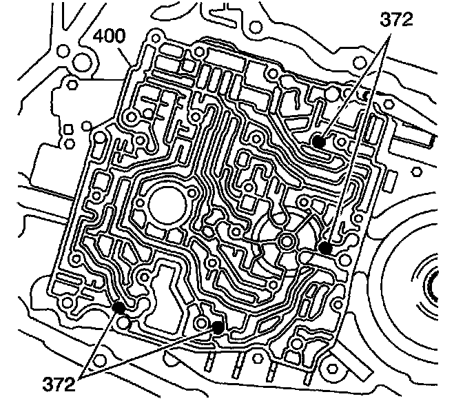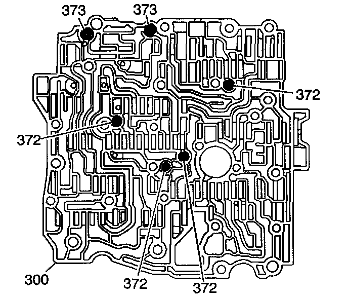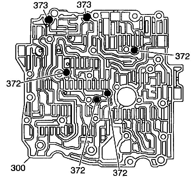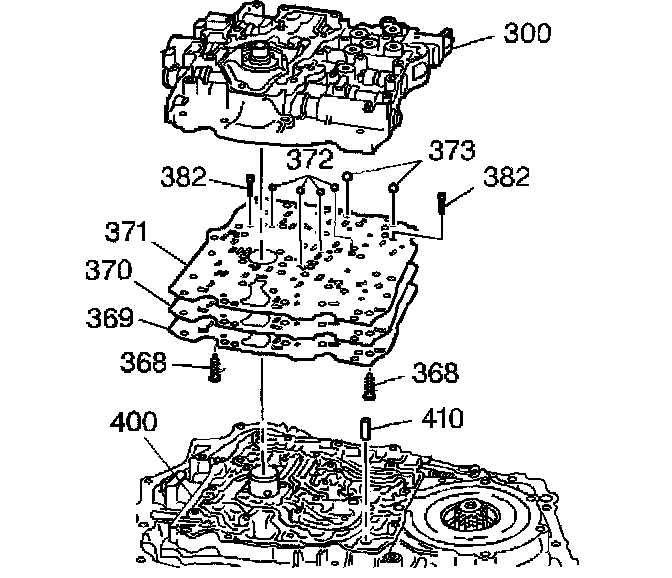 5. Install the valve body bolts (374,381, 384).
