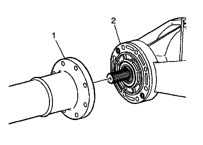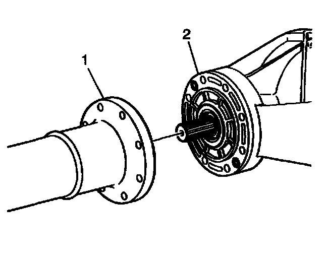 3. Install the torque tube (1) to the differential (2).