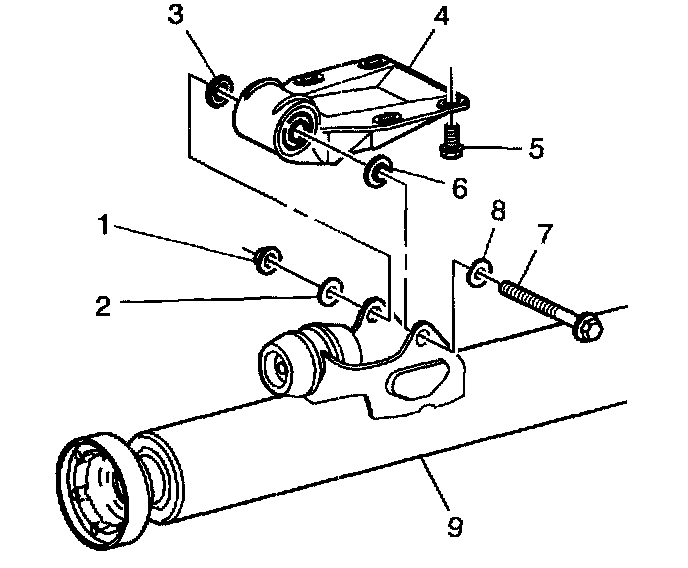 5. Loosen, but do not remove, the torque tube-to-bracket through bolt (7) and nut (1).