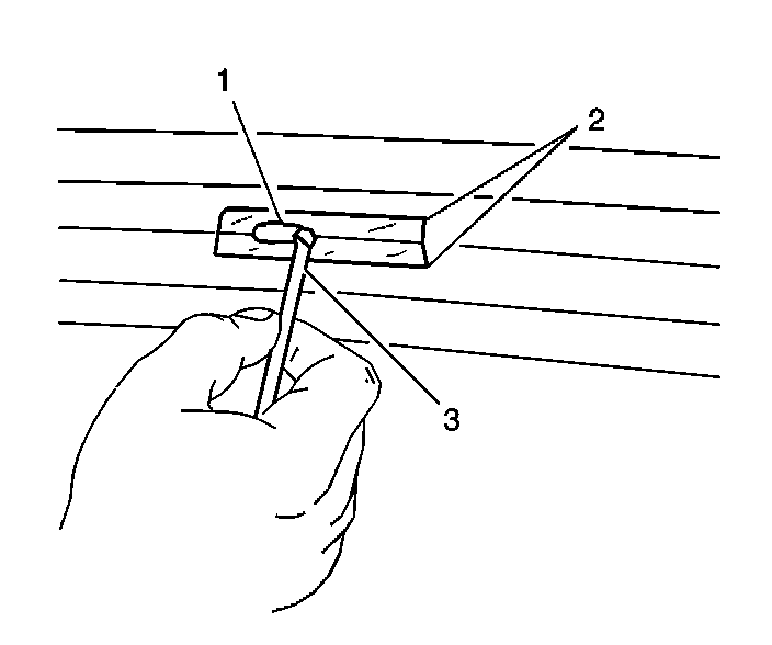 2. Use the brush (3) in order to spread the grid line repair material (1). Ensure that the repair material covers all of the areas of the cut out.